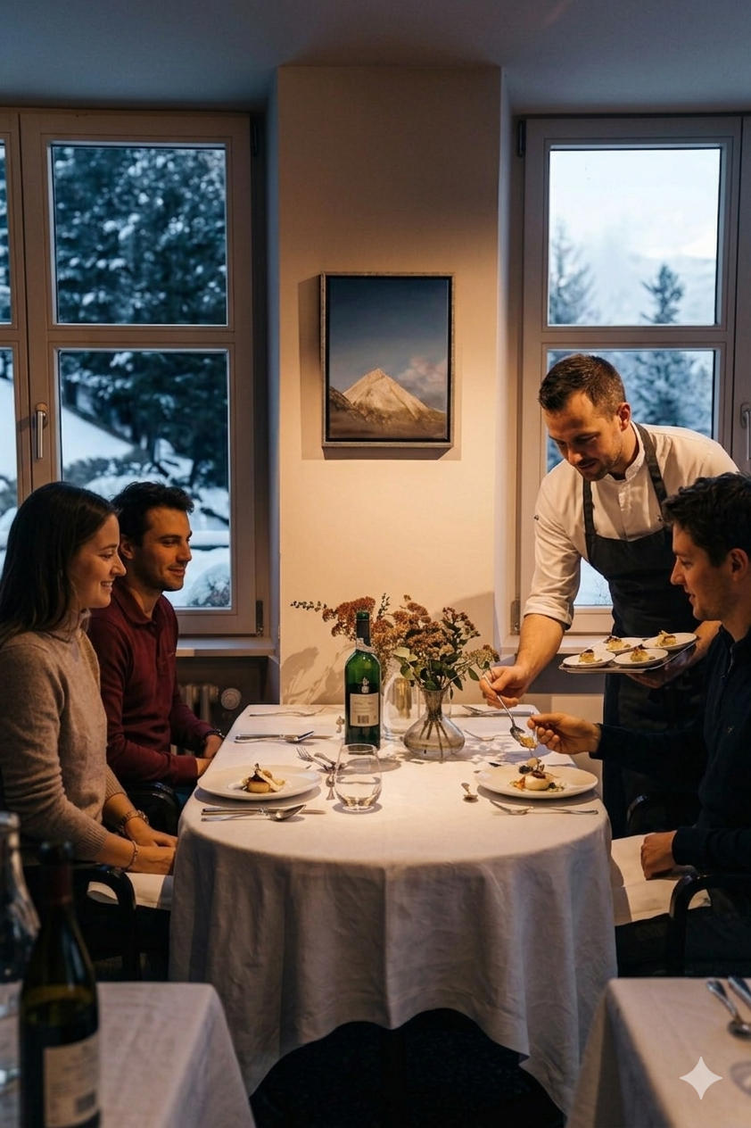 Vom Frühstücksbuffet bis zum festlichen Galadinner – im Waldhotel Fletschhorn bestimmen Sie Tempo und Geschmack. Nur auf Anfrage und mit Voranmeldung.